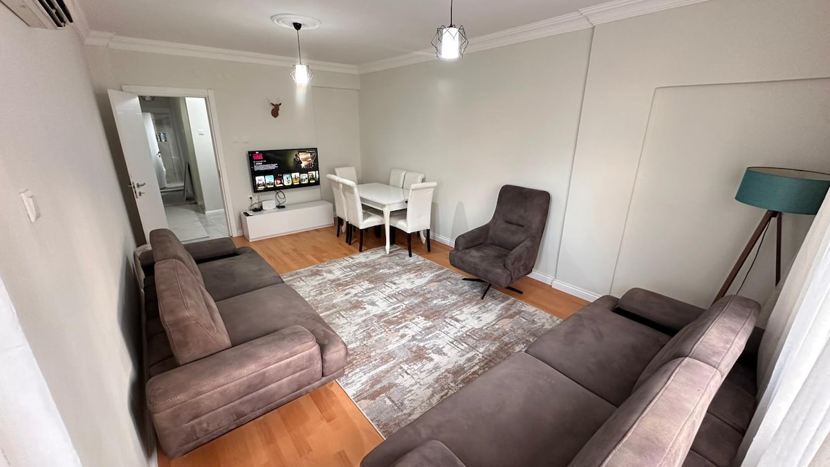 Unsere moderne und komfortable 1+1 Wohnung bietet mit ihrer Erdgas- und Klimaanlage zu jeder Jahreszeit eine angenehme Unterkunft. Unsere zentral gelegene Wohnung ist nur wenige Gehminuten von öffentlichen Verkehrsmitteln, Märkten und dem Nachbarschaftsmarkt entfernt. Mit der Visco-Matratze im Schlafzimmer kannst du die Müdigkeit des Tages leicht lindern, und es gibt eine voll ausgestattete Küche und schnelles Internet, das für Wohnkomfort sorgt. Es ist nur 15 Gehminuten von der Altstadt mit ihrer historischen Struktur entfernt und ist ideal für Kurz- oder Langzeitaufenthalte für Geschäfts- oder Urlaubsreisende.