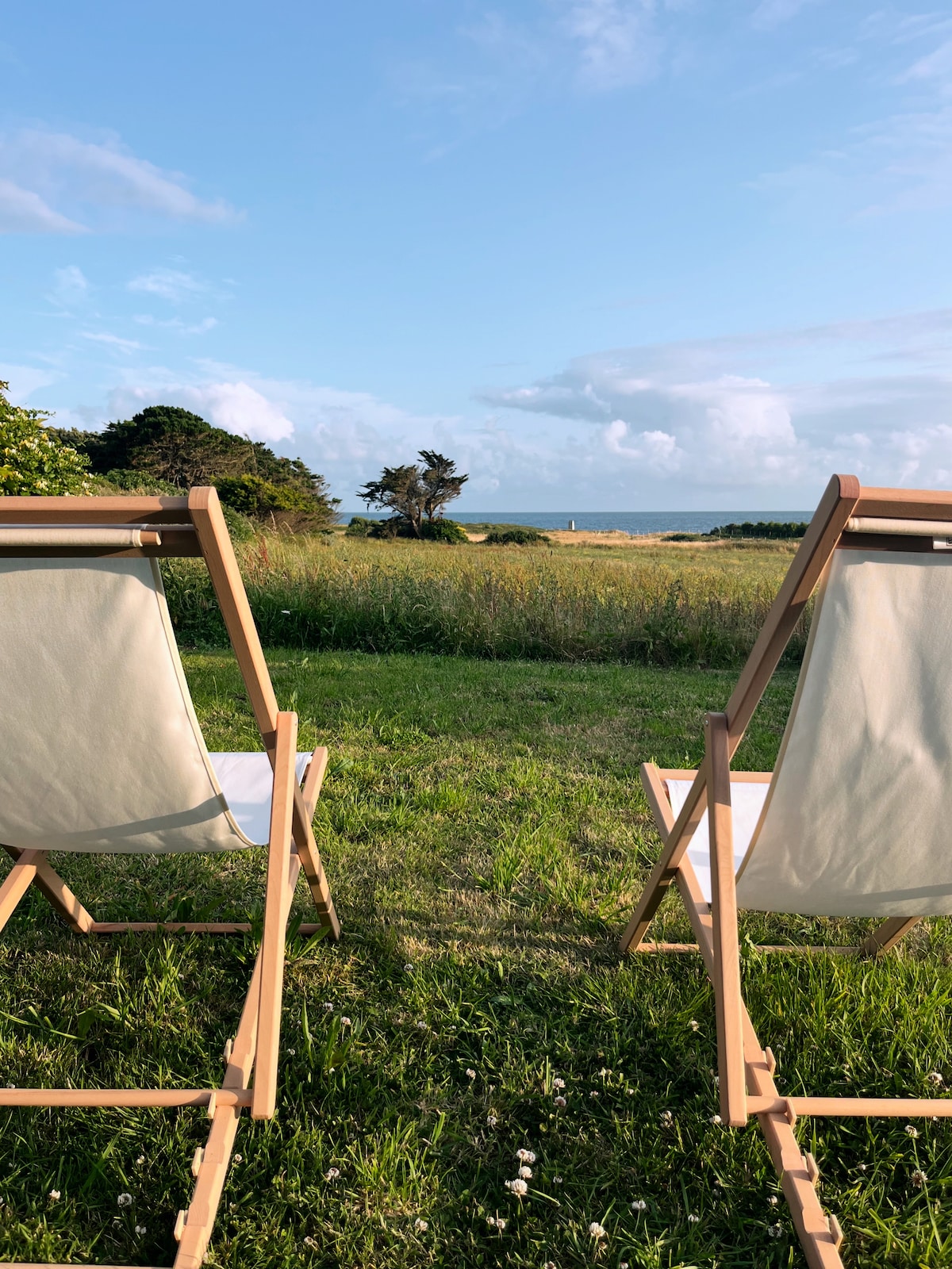 Kürzlich renoviertes Bauernhaus, das zum Herrenhaus am Meer gehört. Geschmackvoll eingerichtet vom Eigentümer (Maler und Architekt) - komplett ausgestattet mit allem, was man im Urlaub braucht - komfortable Schlafzimmer mit eigenen Badezimmern, nach Westen ausgerichtete Terrasse mit Grill, Waschmaschinen und Waschmaschinen. Sonniges und geräumiges Wohnzimmer. Télévision, Internet, Musikanlage. Das Meer 3 Minuten zu Fuß entfernt. Charmantes Dorf mit Markt und Supermarkt 4 Minuten Fahrt vom Haus entfernt. Golfplatz 10 Autominuten entfernt.