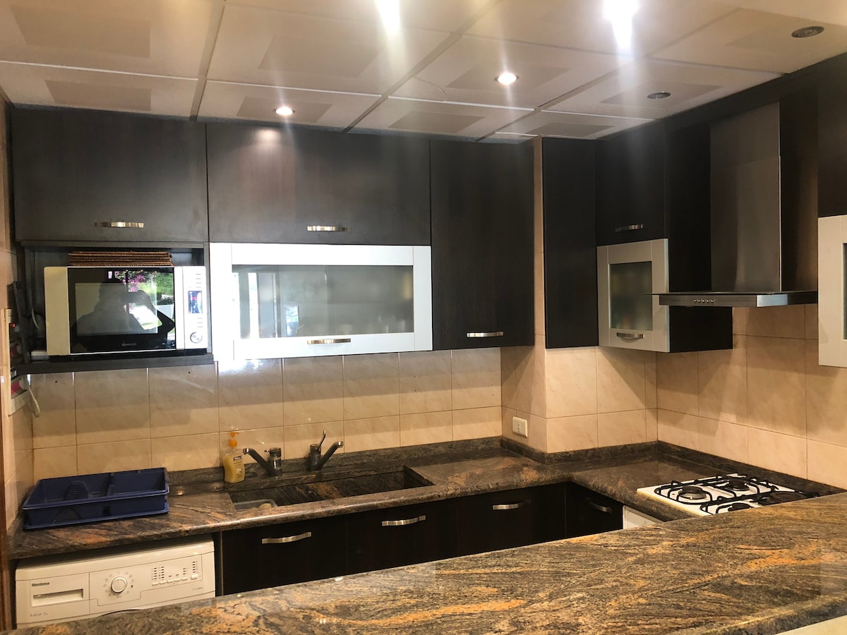 Diese schöne minimalistische Wohnung mit 4 Hauptschlafzimmern verfügt über 5 Badezimmer, 1 TV-Wohnraum, einen riesigen Salonraum mit einem Essbereich und große Glastüren, die viel natürliches Licht ausstrahlen, einen geräumigen Außenbalkonbereich mit 2 Abschnitten und einen Lounge-Bereich im Freien, eine voll ausgestattete Küche mit Zugang zu einer Waschküche im Freien. Das Apartment verfügt über rund um die Uhr Strom, High-Speed-Internet-WLAN, Smart-TV(Netflix, Prime, Disney, Youtube), ein Warmwassersystem und eingebaute Geräte.