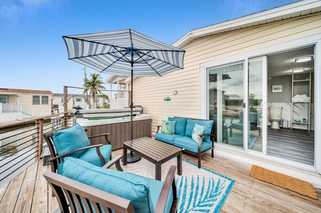Villa510 is a newly built waterfront retreat ideal for extended stays in Cape Coral. Enjoy peaceful salt canal water views and manatees from the lanai, then relax in your private heated pool and spa—perfect year-round. The outdoor kitchen and lanai create an easy, comfortable daily routine. Inside offers three private en-suite bedrooms, a den with optional airbed, open living space, and TVs in every room. Close to shopping, dining, and beaches—perfect for snowbirds seeking comfort and ease.