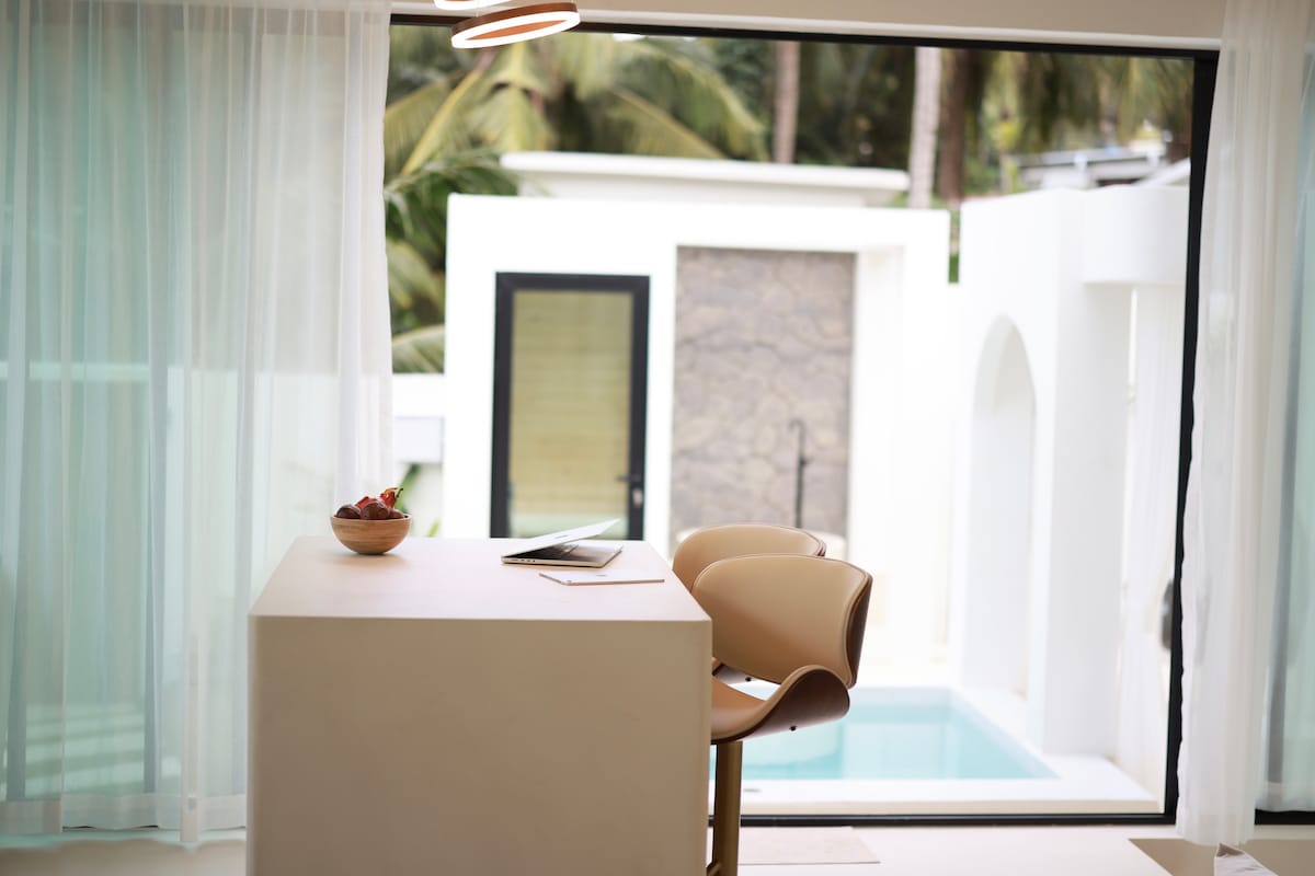 LOLISEA vous propose un hébergement indépendant et spacieux avec une piscine privée à débordement (eau salée pas de chlore)qui vous offrira une vue imprenable sur le parc national des îles Ang Thong ainsi que son île voisine, Koh Tao. Une maison toute équipée pour votre plus grand confort : cuisine fonctionnelle, coin détente doté d’une grande télévision, chambre séparée et climatisée mais aussi salle de bain ajourée. Tout cela décoré avec modernité sans jamais s’éloigner du cadre naturel.