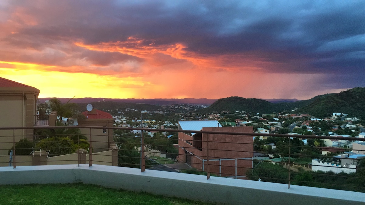 Egal, ob Sie Namibia für einen Urlaub, eine Geschäftsreise oder ein Sportwochenende besuchen – ob Sie mit kleinen Kindern oder älteren Familienmitgliedern reisen – City Comfort ist Ihr perfektes zweites Zuhause. Unsere Selbstversorgungseinheit ist durchdacht gestaltet, um sowohl Komfort als auch Bequemlichkeit zu bieten: • Geräumiger Wohnbereich mit klaren Linien und einem gemütlichen Kamin für kühle Winterabende • Atemberaubende Bergblicke als tägliche Kulisse • sichere Parkplätze • gut ausgestattete Küche