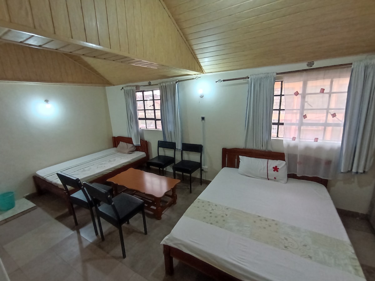 Entspanne dich mit der ganzen Familie in dieser ruhigen Unterkunft....Die Einrichtung wird dir eine entspannende Stimmung geben. offene Küche ,gut ausgestattet. gut beleuchtet und sehr sauber, öffnet sich der Balkon des Aufenthalts im Zimmer zu einem gut gepflegten Brunnen mit frischer Luft. wir sind zentral gelegen nach Westland, Upper Hill,CBD und zu den Karen. Einfache Erreichbarkeit von Schulen wie dem Braeburn, der französischen Schule undRiara. Sicherheit ist erstklassig, wir sind 3 km von der Kilimani-Polizeistation entfernt.