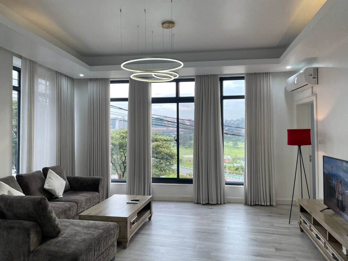 Modern, stilvoll, durchgängig klimatisiert, neu fertiggestellte und voll möblierte 2 Schlafzimmer mit eigenem Bad, 2,5 Badezimmer, nur wenige Schritte vom Golfplatz entfernt. Die Unterkunft ist wunderschön mit modernen Möbeln eingerichtet und garantiert einen luxuriösen Lebensstil in der besten Wohngegend in Kigali. Einige wichtige Geräte und Einrichtungsgegenstände sind: 55-Zoll-Fernseher. Glasfaser-Internetzugang Waschmaschine Doppeltürkühlschrank Eingebauter Backofen mit gebautem Geschirrspüler.
