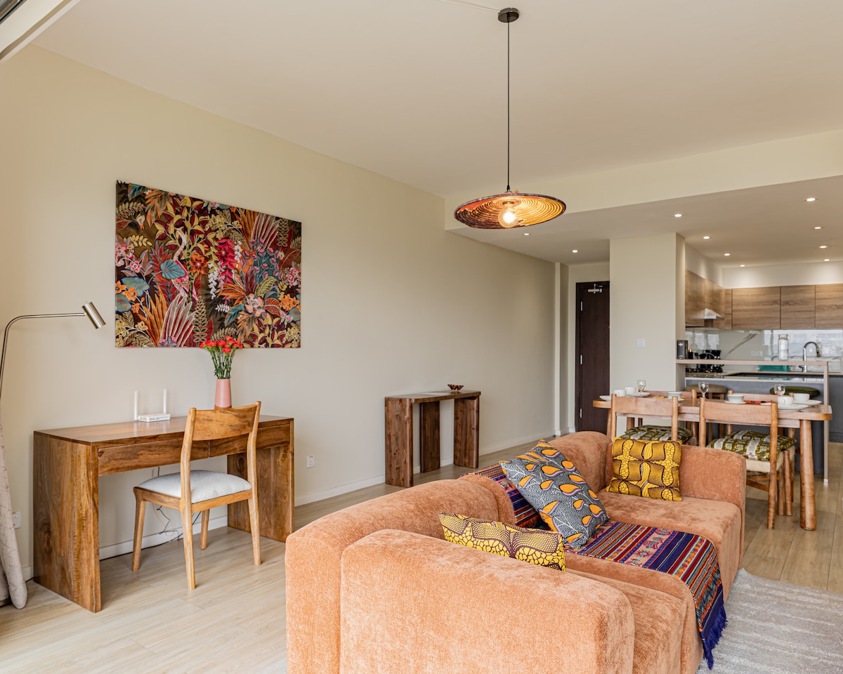 Willkommen im Bohemian Home im 17. Stock in Kilimani. Folgendes steht auf dem Programm: Atemberaubender Blick auf den Sonnenuntergang im🌅 17. Stock 🛒🛍️nur wenige Gehminuten vom Yaya Center entfernt Komfort mit🛋️ eigenem Balkon 🏋🏾♀️Voll ausgestattetes Fitnesscenter 🏌🏽♂️⛳️Indoor-Golf 🏓Tischtennis 🚀Schnelles WLAN 🍿Netflix 💼Arbeitsraum 🧑🏾🍳Türkisches Restaurant auf dem Grundstück 💆🏾♂️💆♀️ Spa- & Massagedienstleistungen auf dem Dach 🎲 📚 Bücher und Spiele 🎨🪴Originalkunst und Pflanzen ☕️Kaffeemaschine 🍳Voll ausgestattete Küche 🛌Gemütliche orthopädische Matratze 🧹Reinigungsdienste nach Belieben, und mehr…