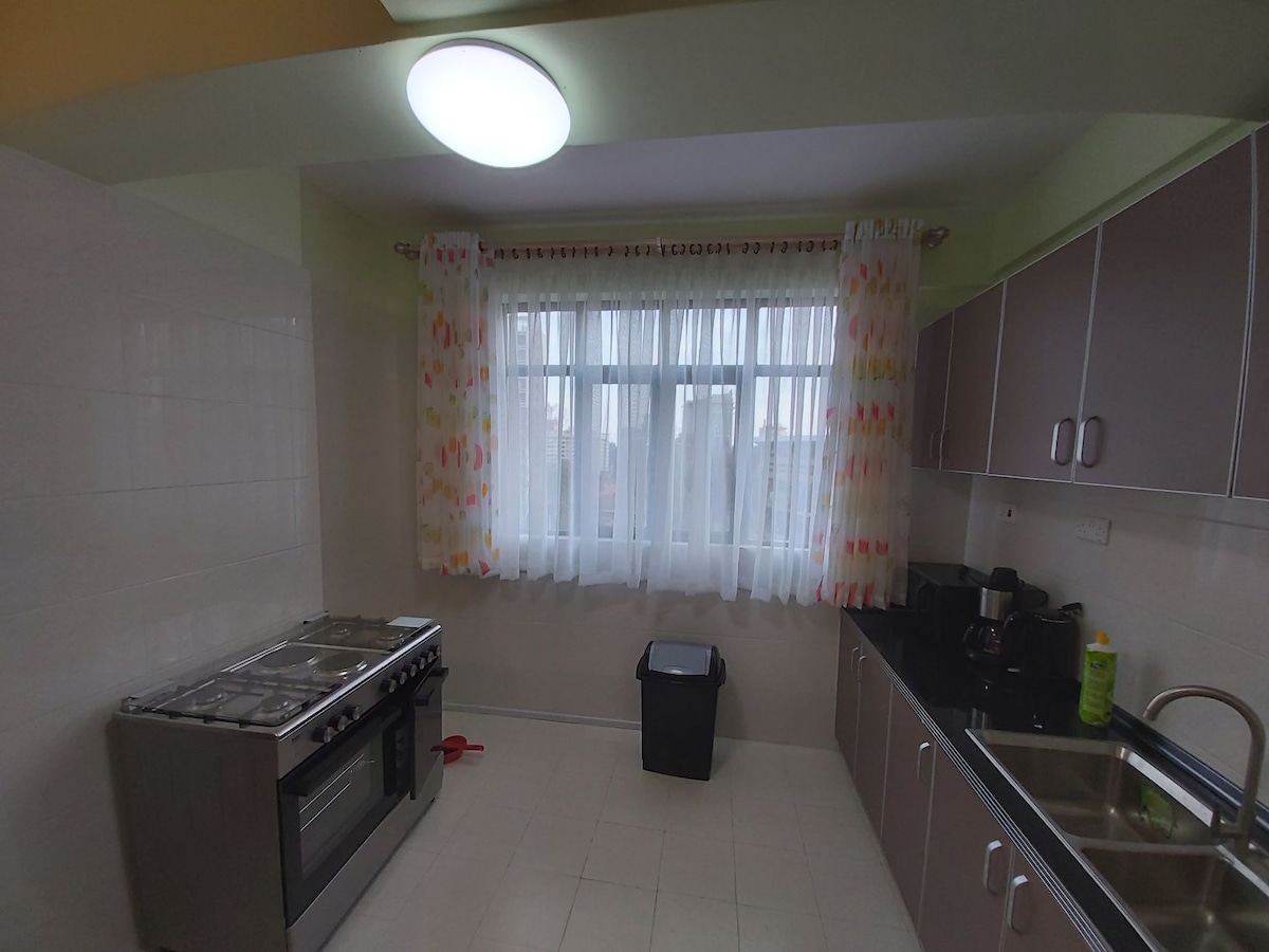 Welcome to your cozy home away from home! This modern furnished 2-bdrm apt is located in Kilimani it’s a brand New development, offering a perfect blend of comfort for both short/ long stays with Blackout curtains for easy Daytime Sleep. The apartment is decorated with modern furnishings and is equipped with all the amenities you'll need for your stay. The apt offers a peaceful & private environment and it can comfortably fit 3 to 4 guests max The apt is Fumigated to ensure its pests free