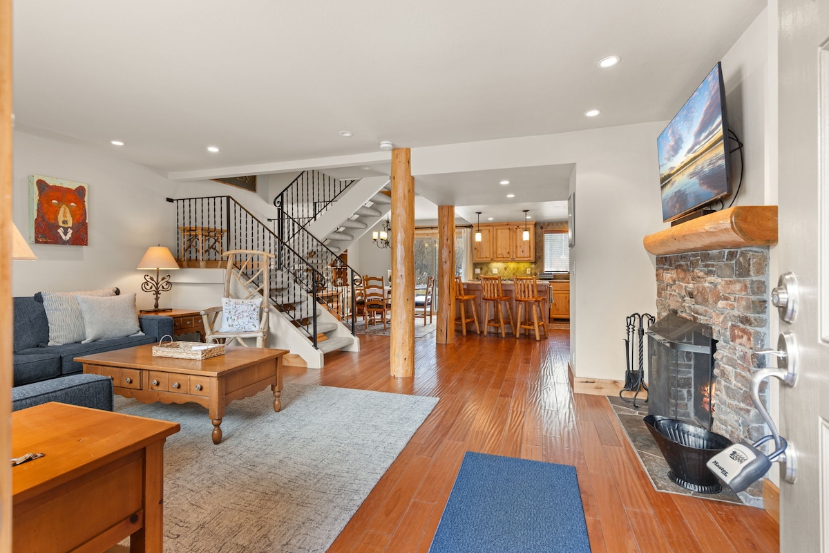 2B/1B 1000 Quadratfuß Eigentumswohnung, Schlafzimmer im Obergeschoss ist ein Loft. Die Terrasse mit Whirlpool bietet einen Blick auf das Tal. Gasgrill auf der Terrasse. Das Badezimmer wurde komplett renoviert und verfügt über eine Dampfdusche und einen Fußbodenheizung. Die Küche verfügt über eine Bar zum Essen. Neuere Geräte. Gaskamin mit Fernbedienung mit Ofenwärme, keine zentrale Luft. Waschmaschine und Trockner für deine Bequemlichkeit. Maximal 2 Autos pro Aufenthalt, es gibt sehr begrenzte Parkplätze. Ich habe auch Schilder zur Verfügung gestellt, die während deines Aufenthalts in deinem Auto angebracht werden müssen. VHRP-Nummer 16-934