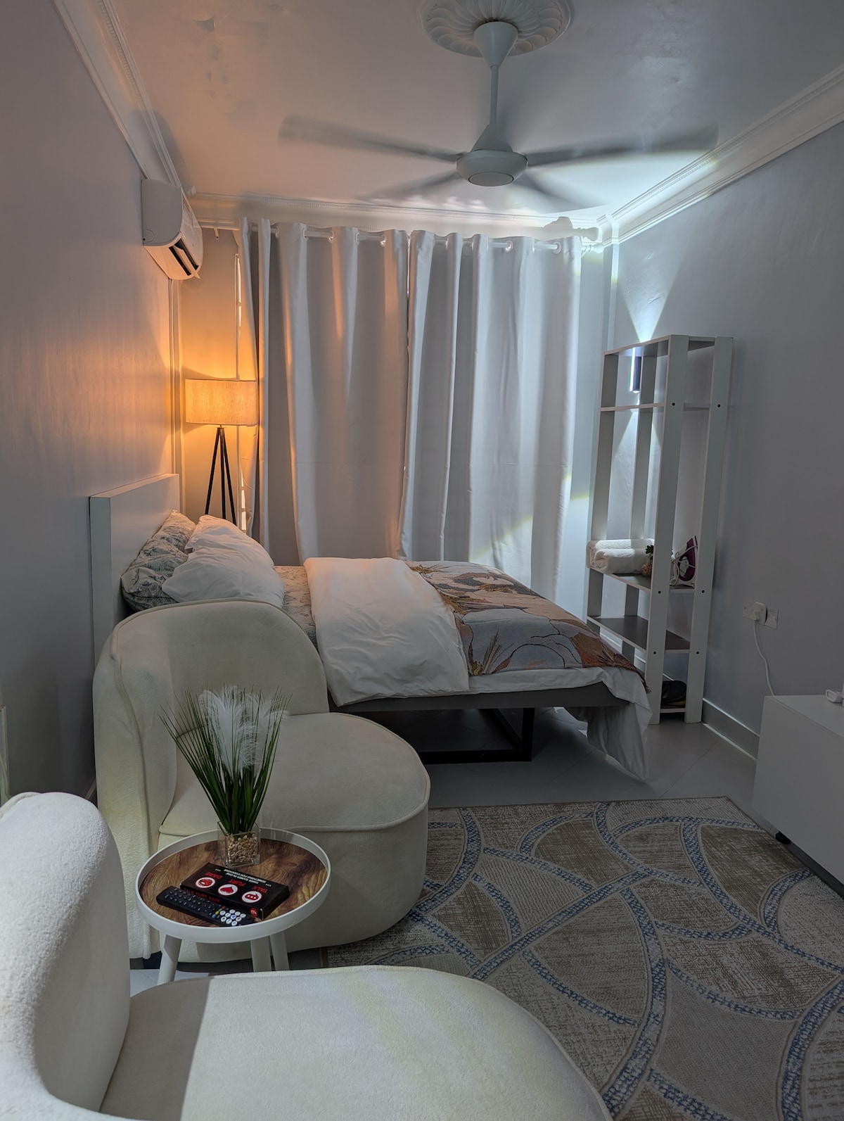 Coco Haven – Stay,Work & Play Discover the perfect blend of comfort, serenity and convenience. Tucked away in a peaceful compound, just 6-minute walk from the beach, it’s an ideal retreat for business travelers, remote workers, or anyone seeking a serene home base Enjoy a reliable workspace, a cozy private hideaway, and all the essentials for short or long stays. Whether you’re here for meetings, projects or simply to recharge it offers the calm you need with easy access to the city’s main hubs
