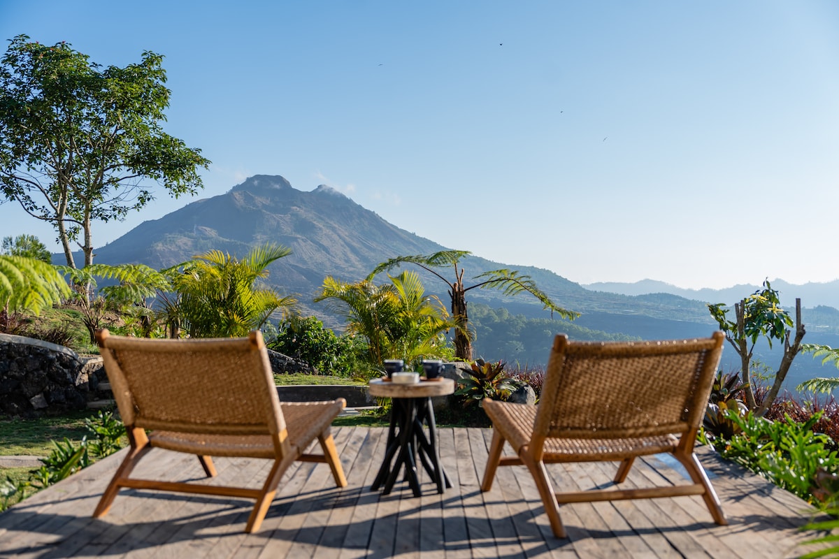 Hidden Gem in Kintamani with Majestic Mount Batur Views. Iconic luxury private villa experience set in Bali's UNESCO world heritage Tucked away in total privacy with no neighbors in sight, this stunning two-story villa offers an unforgettable escape in the heart of Kintamani. Wake up to breathtaking sunrises over Mount Batur—right from your bed. Just minutes from Kintamani’s best cafés and restaurants, this villa is perfect for those seeking peace, luxury, and nature in one unforgettable stay.
