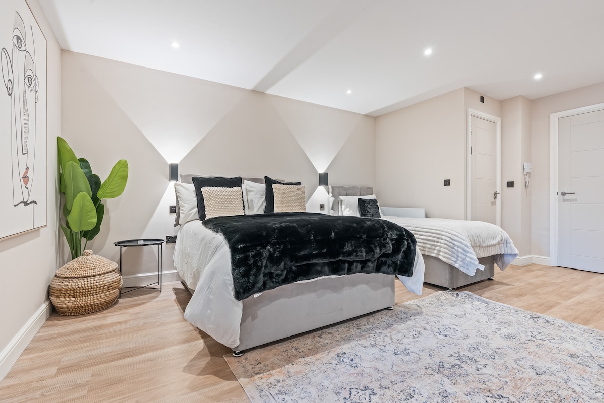 Relax in this spacious, design-led 1-bed apartment set in leafy Kirkstall. Featuring a huge lounge, dining kitchen and a super-king bedroom with Smart TV, it’s ideal for business trips, romantic stays or longer city breaks. Enjoy bold playful interiors, stylish furniture and a bathroom with bath and shower. Fully equipped and with fast business grade Wi-Fi, dishwasher, washer-dryer and free on-street parking. Just two short train stops to Leeds city centre and a bus at the end of the road.
