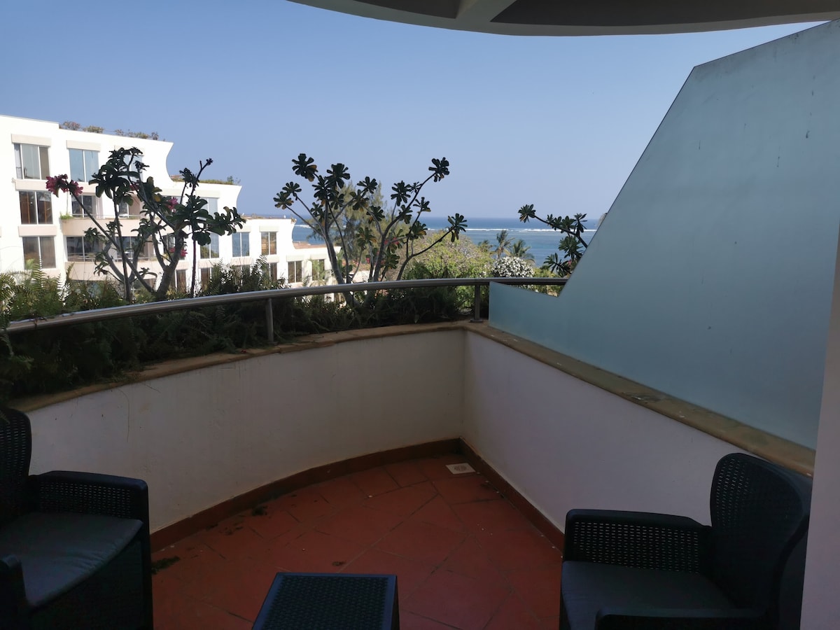 Eine gemütliche, möblierte Serviced-Studiowohnung (Bamburi) *Geeignet für 2 Erwachsene und 1 Kind oder 3 Erwachsene, ausgestattet mit einem Queensize-Bett und einem Einzelbett *Tägliche Reinigung inklusive * Esstisch mit vier Stühlen, Sofa, Couchtisch *Klimaanlage *Fernseher *Safe zum Abschließen *Balkon – zwei Stühle, Kaffeetisch *Küche – Kühlschrank, Mikrowelle, Wasserkocher, Kaffeemaschine, Toaster, Geschirr, Besteck *Zugang zu Annehmlichkeiten – Pool, Kinderspielplatz, Strandbar, Restaurant, Fitnessraum, Strand, Wäscherei *21 km vom internationalen Flughafen Moi entfernt *26 km von SGR Mombasa