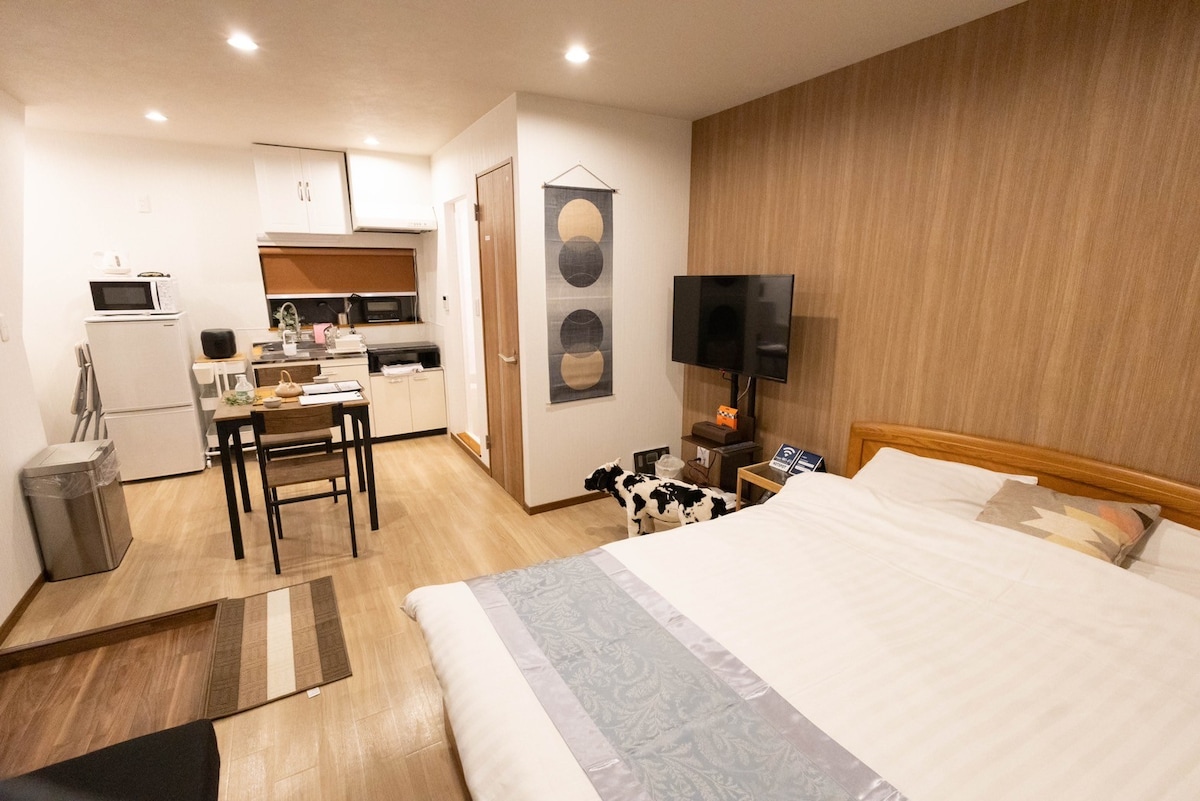 [Xiaozhique Empfehlung] * Der Leitfaden zur Unterkunft wird sofort nach der Reservierung gesendet - Bequeme Lage: Vom B&B aus erreichen Sie in 9 Minuten zu Fuß die Station Kishiri (Linie 4), das B&B liegt in der Nähe von beliebten Sehenswürdigkeiten wie dem Tempel Tennoji, New World und Tsuutenkaku. Von der Anrji-Station nehmen Sie die Linie 4/5, 3/4 Stationen direkt nach Namba Station/Shijo Station (in der Nähe von Namba, Shinsaibashi, Amerika-Mura, Dotonbori, Schwarzer Tor-Markt und anderen beliebten Gebieten); von der Shijo-Linie "Daikokucho Station" wechseln Sie zur Gotemo-Linie in Richtung Umeda, um direkt zu Tempel, Namba, Umeda und anderen Geschäftsvierteln zu gelangen. In der Geschäftsmeile von Umeda gibt es Hankyu, Hanshin Department Store, Sanban Street und viele andere beliebte Gegenden, die Sie erkunden können! Die Lage des B&B ist verkehrsgünstig und kann Ihre verschiedenen Bedürfnisse für Essen, Trinken und Unterhaltung erfüllen. Es ist die beste Unterkunft für die Erkundung von Osaka! - Exklusive Wohnung: 26 Quadratmeter komplette Wohnfläche, ein Schlafzimmer, ein Wohnzimmer, ein Badezimmer, ein Schlafsofa, mit Balkon. Schönes Innendesign, bequeme Bettwäsche, genießen Sie einen privaten Urlaub mit Ihrer Familie und Freunden, bis zu 3 Gäste. - Wichtige Hardware: Vollständige WIFI-Abdeckung, großer Farbfernseher, Haartrockner, Wasserkocher, Waschmaschine, Mikrowelle und andere Lebensmittel. (Aus hygienischen Gründen werden keine Gewürze bereitgestellt.) - Saubere Unterkunft: Professionelle japanische Reinigung, die garantiert, dass die Unterkunft für jeden Gast gewechselt wird. - Erfahrung mit Kimono: Professionelle Partner für Kimono-Erlebnisse bieten Ihnen einen herzlichen Service. - Zuverlässiger Gastgeber: Herzlich und großzügig, persönlicher Service in drei Sprachen: Chinesisch, Japanisch und Englisch. - Sicherheit und Brandschutz: Rauchmelder und Feuerlöscher in allen Zimmern.