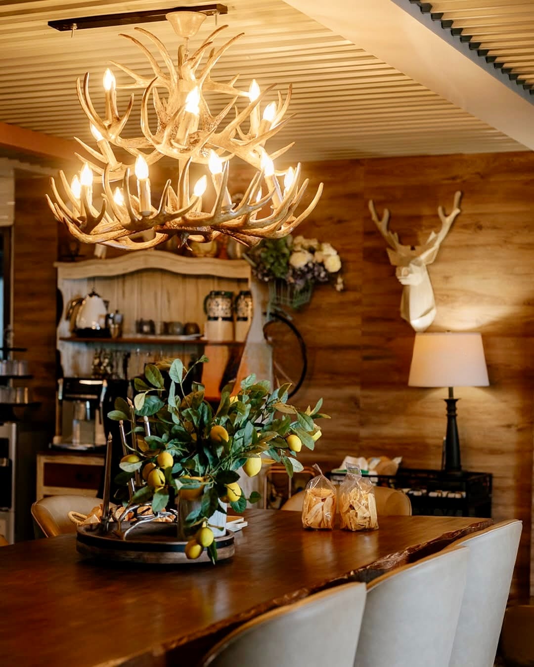Exklusive moderne Hygge-Lounge bei Sonnenuntergang Don Carlos