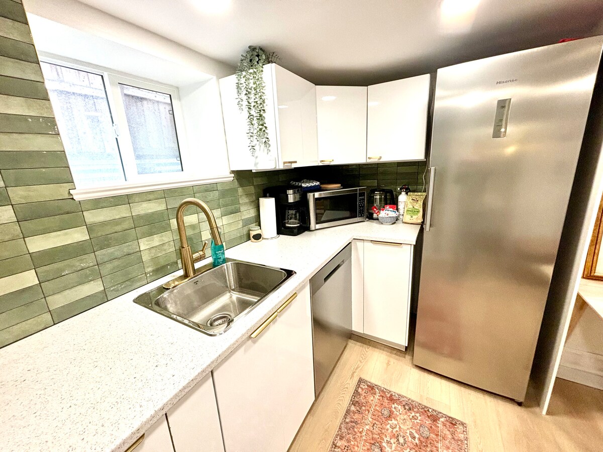Willkommen in unserer luxuriösen Gartensuite mit einem privaten Whirlpool im Freien, perfekt zum Entspannen! Sie befindet sich in der Innenstadt von Kitchener, nur wenige Schritte von Cafés, Bäckereien, Restaurants und dem Wochenendbauernmarkt entfernt. Diese Suite mit 2 Betten/2 Bädern verfügt über eine voll ausgestattete Küche, eine Waschmaschine/einen Trockner und einen atemberaubenden neuen Bodenbelag. Mit schnellem Zugang zu Autobahnen, Transitlinien zu Colleges und Universitäten und dem Iron Horse Trail ist es der ideale Ort für Familien, Arbeiter und Studenten. Parkplätze sind ebenfalls inbegriffen!