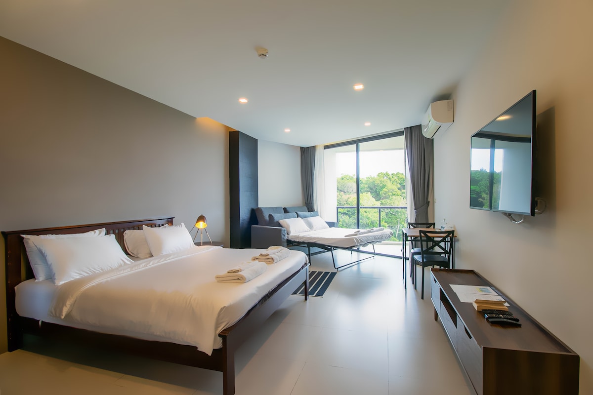 Möchtest du dem hektischen Treiben des überfüllten Stadtlebens und der Touristenfallen entfliehen? Mae Phim ist der Ort schlechthin! Genieße den absolut wunderschönen Sonnenuntergang von unserer Wohnung am Strand! Nur 100 Fuß vom Meer entfernt, befindest du dich mitten im Herzen des Mae Phim Strandes. Perfekt für einen romantischen Kurzurlaub oder ein Familienwochenende! Die Wohnung liegt nur wenige Schritte vom weißen Sandstrand, tollen Restaurants, Märkten und allem, was Mae Phim zu bieten hat. Wir wissen es wirklich zu schätzen, dass Durianund Jackfrüchte nicht in den Raum gebracht werden.