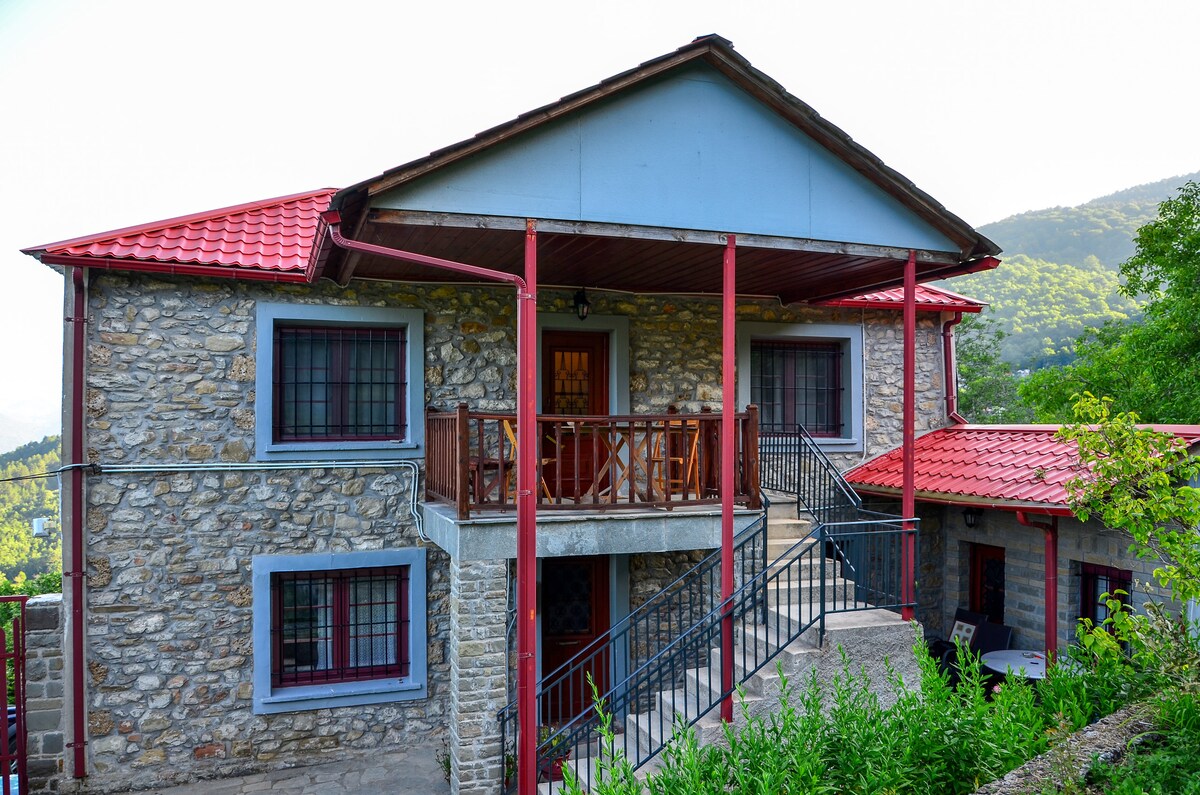 Wenn Sie Natur, Abenteuer, Bergpfade und unberührte Gebiete abseits des Trubels der Stadt lieben, kann unser Dorf und unsere Steingästehaus Sie beherbergen! Steinhaus inmitten der Natur mit zwei Schlafzimmern und Wohnküche mit herrlichem Blick auf das Pindos-Gebirge und den Berg Tymfi. Unser Dorf liegt auf einer Höhe von 1000 m und ist nur 20 km von der Kreuzung von Ost-Zagori der Egnatia-Straße entfernt. 45 Minuten von Metsovo und 20 Minuten vom schönen See der Quellen von Aoos entfernt.
