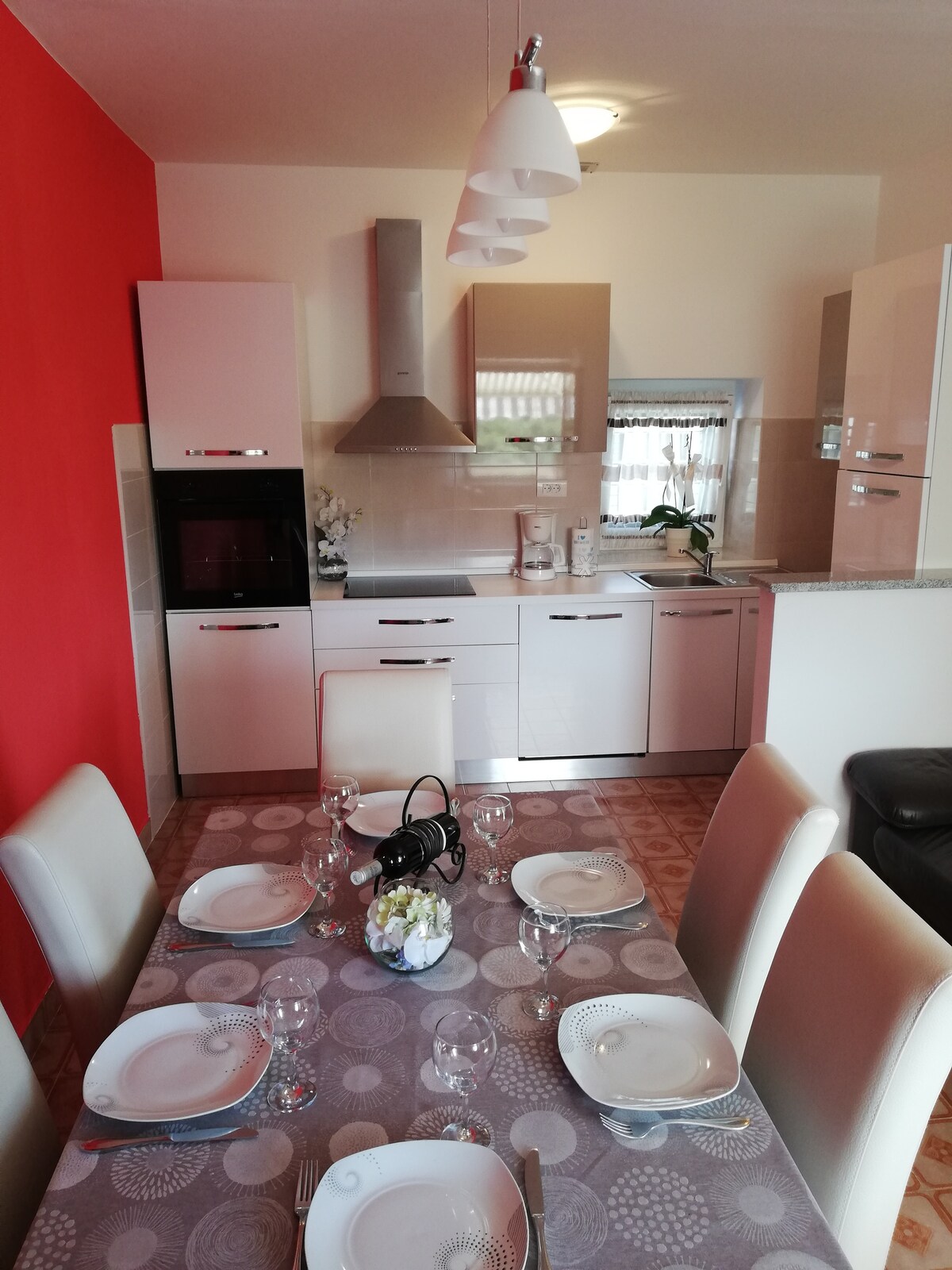 Die Wohnung „Na krasi“ befindet sich im Zentrum Istriens, in dem kleinen Dorf Grzini, in der Nähe von Žminj. Sie besteht aus zwei Schlafzimmern, einem Wohnzimmer, einer Küche, einem Essbereich und einem Badezimmer. Geräumiger grüner Garten, großer Pool, Grill, Sport. Sie verfügt auch über einen Parkplatz.