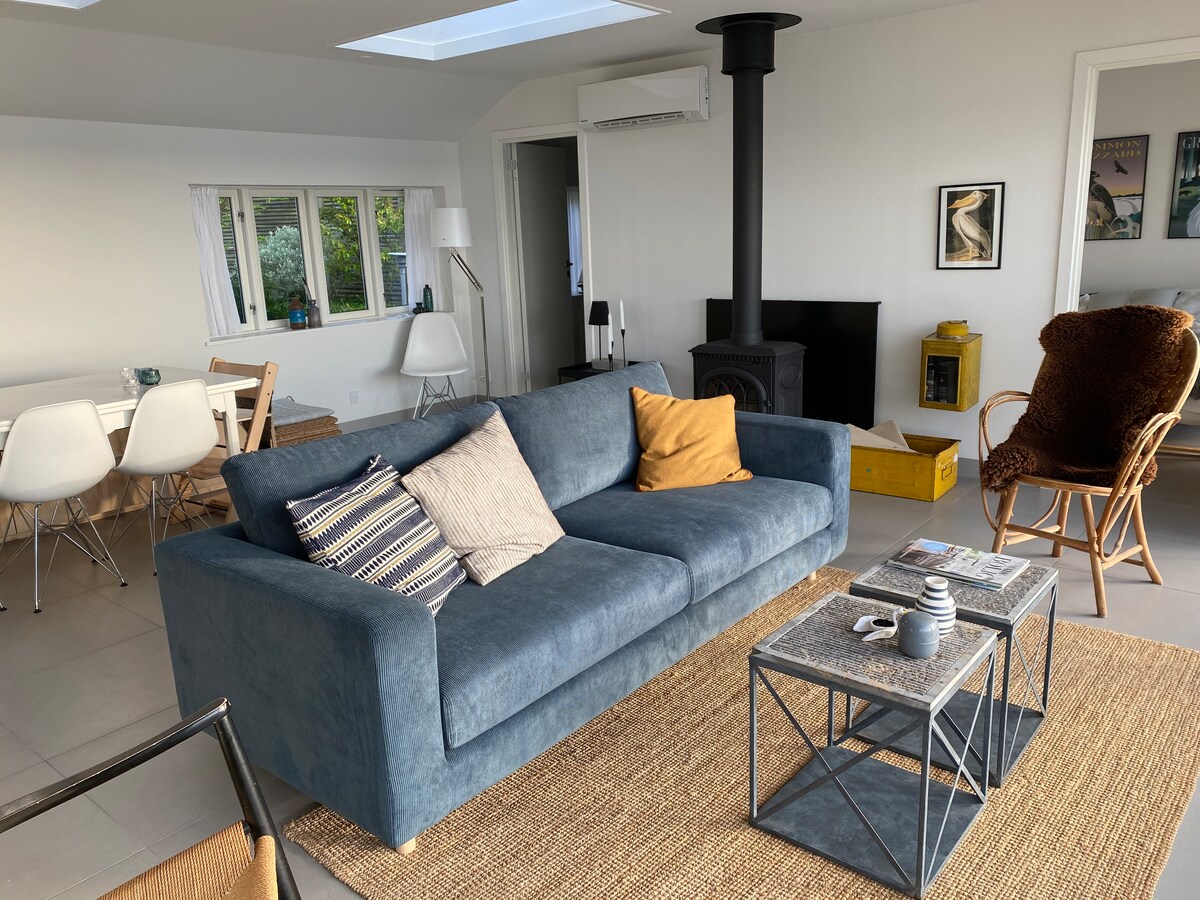 Wache in einer ruhigen malerischen Gegend mit Blick auf Sletterhage Lighthouse und Aarhus Bay auf. Die Residenz ist ein Ferienhaus neben unserem Haus. Ca. 55 qm mit 3 Wohn-/Schlafzimmern, einem kombinierten Flur, Küche und Wohnzimmer sowie einem Badezimmer. Wir befinden uns in der Nähe von Ebeltoft und Mols Bjerge National Park. Du wirst mein Zuhause lieben wegen Ruhe und Frieden, Gemütlichkeit, Aussichten. Die Unterkunft ist für Paare und Solo-Abenteurer geeignet. Ideal für Wanderungen in der wunderschönen Landschaft und Gletscherlandschaft von Helgenæs.