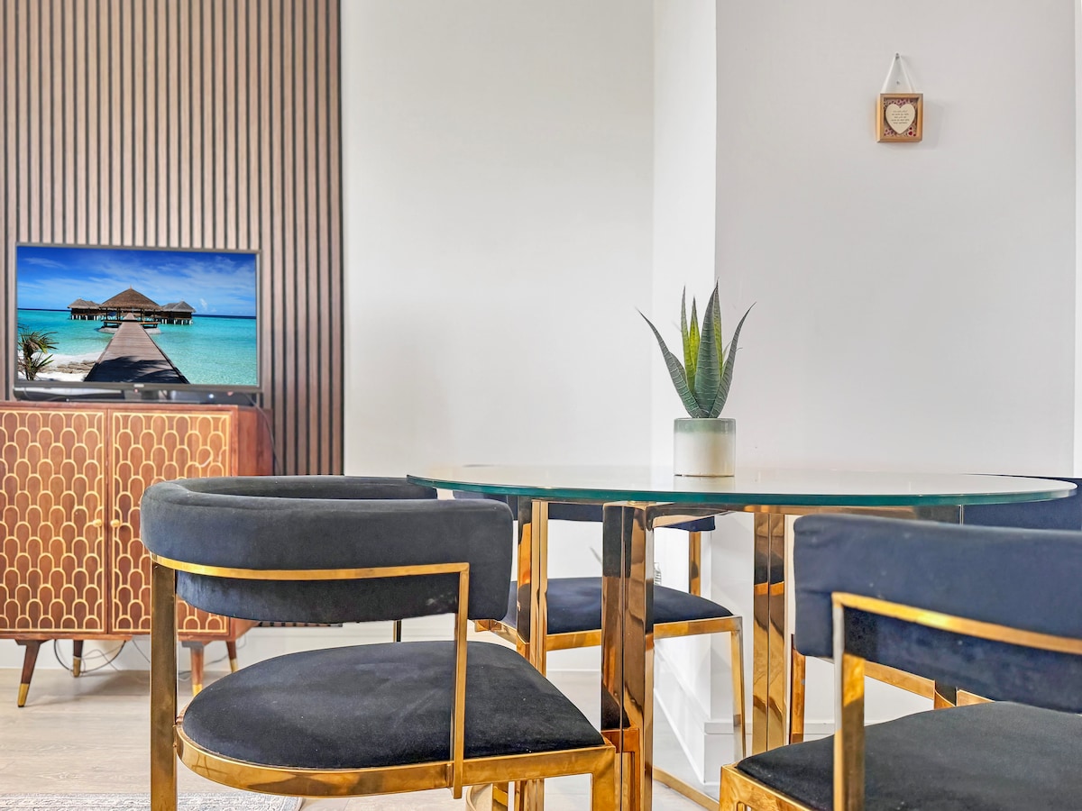 In Central Milton Keynes an der Upper Fourth Street befindet sich die exquisite „Diamond Suite“, eine Wohnung mit 2 Schlafzimmern von unvergleichlichem Luxus. Die Suite profitiert von einer Medienwand und einer großen Kücheninsel mit hochwertigen Neff-Geräten. Genieße unseren Tischfußballtisch und ziehe dich in Schlafzimmer zurück, die mit raumhohen Diamantdesigns geschmückt sind. Beide Schlafzimmer verfügen über Duschräume und die Zip & Link Kingsize-Betten bieten anpassbaren Komfort. Mit über 800 Quadratfuß ist dieses übergroße Refugium eine Seltenheit.
