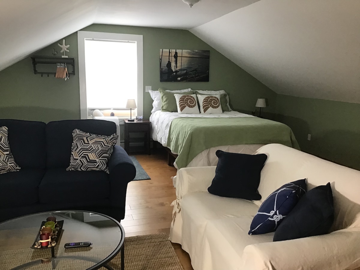 ✨ Übernachte im Herzen von Rockland! Dieses neu renovierte Loft mit einem Schlafzimmer in der Main Street bietet gemütlichen Charme mit schönem Blick auf das Wasser. Die geräumige Küche hat alles, was Sie brauchen, und der Wohnbereich verfügt über ein Sofa, das sich leicht in ein zusätzliches Bett verwandeln lässt. Nur wenige Schritte vom Hafen und der Fähre entfernt und umgeben von Restaurants, Geschäften und Galerien. Egal, ob Sie für einen Wochenendausflug oder einen längeren Aufenthalt hier sind, dieses Loft ist der perfekte Ausgangspunkt, um alles zu erkunden, was Rockland zu bieten hat. STR24-41