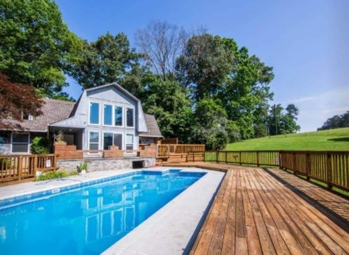 Umgeben von Wäldern und eingebettet in die Bäume, findest du deinen Rückzugsort in diesem geräumigen Haus mit 4 Schlafzimmern und 3 Badezimmern. -- Kilometerlange Wander- und Radwege und einfacher Zugang zum Oak Ridge National Lab und zur Marina. -- Privater Salzwasserpool mit Brunnen, geöffnet vom 1. Mai bis 31. Oktober. Feuerstelle und Grill auf der Terrasse. -- Dein Gastgeber wohnt in einem kleineren Haus auf dem Grundstück und teilt sich einen Hinterhof mit dem Haupthaus.