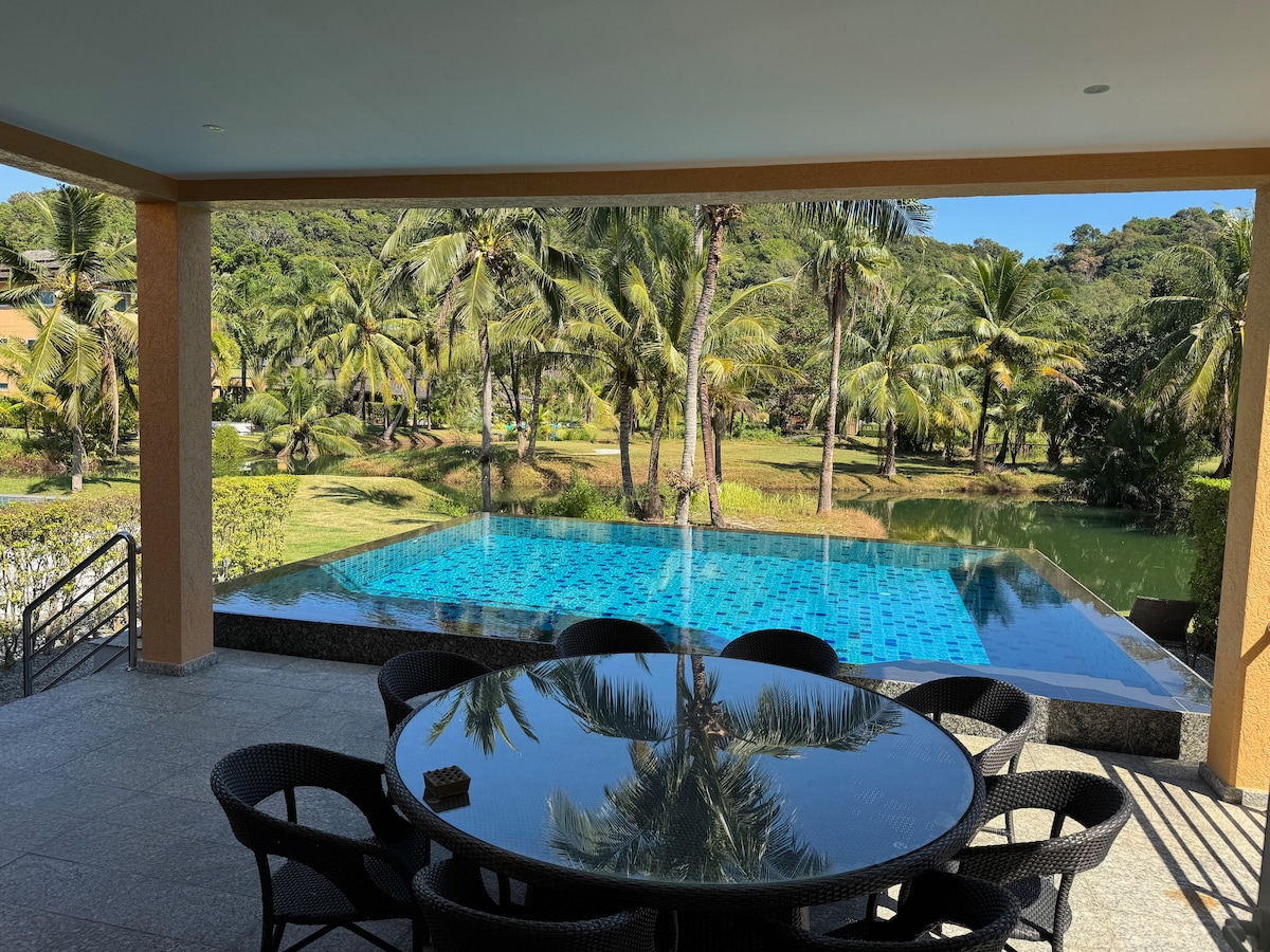 Das bestens ausgestattete Penthouse mit 130m2 Wohnfläche und einer grossen Terasse mit 25m2 bietet eine traumhafte Aussicht über die Bucht von Bang Bao, das Pier sowie die vorgelagerten Inseln des Archipels. Zur Residence gehört ein großzügiger Infinity-Swimmingpool in einem gepflegten tropischen Garten und eigenem Anlegesteg.