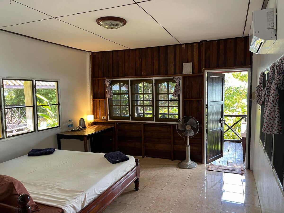 This charming, traditional teak wood Thai-style bungalow is an adult-only, non-smoking retreat located in a peaceful area of Koh Mak. It features a king-size bed, A/C, a modern bathroom, and a kitchenette. Guests can relax on a private terrace and use the shared swimming pool & co-working space nearby. Ideal for a tranquil getaway, this home is designed for solo travelers seeking quiet comfort and is also a good fit for sports enthusiasts.