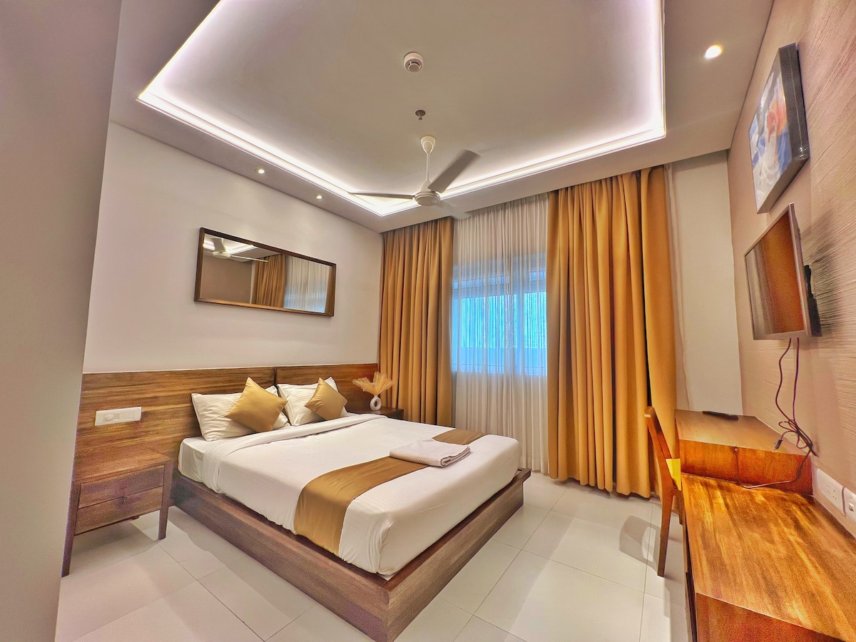 A spacious and centrally located 3-bedroom home on the second floor, designed for comfort, privacy, and convenience. The living room features a 43-inch Smart LED TV, a 5-seater sofa —ideal for movie nights or relaxing after a busy day. Large windows bring in natural light and create a warm, welcoming atmosphere. - Three air-conditioned bedrooms with king-size beds. - Attached bathrooms with hot & cold showers. - Smart LED TVs in all bedrooms. - Fresh linens, pillows, and essentials provided.