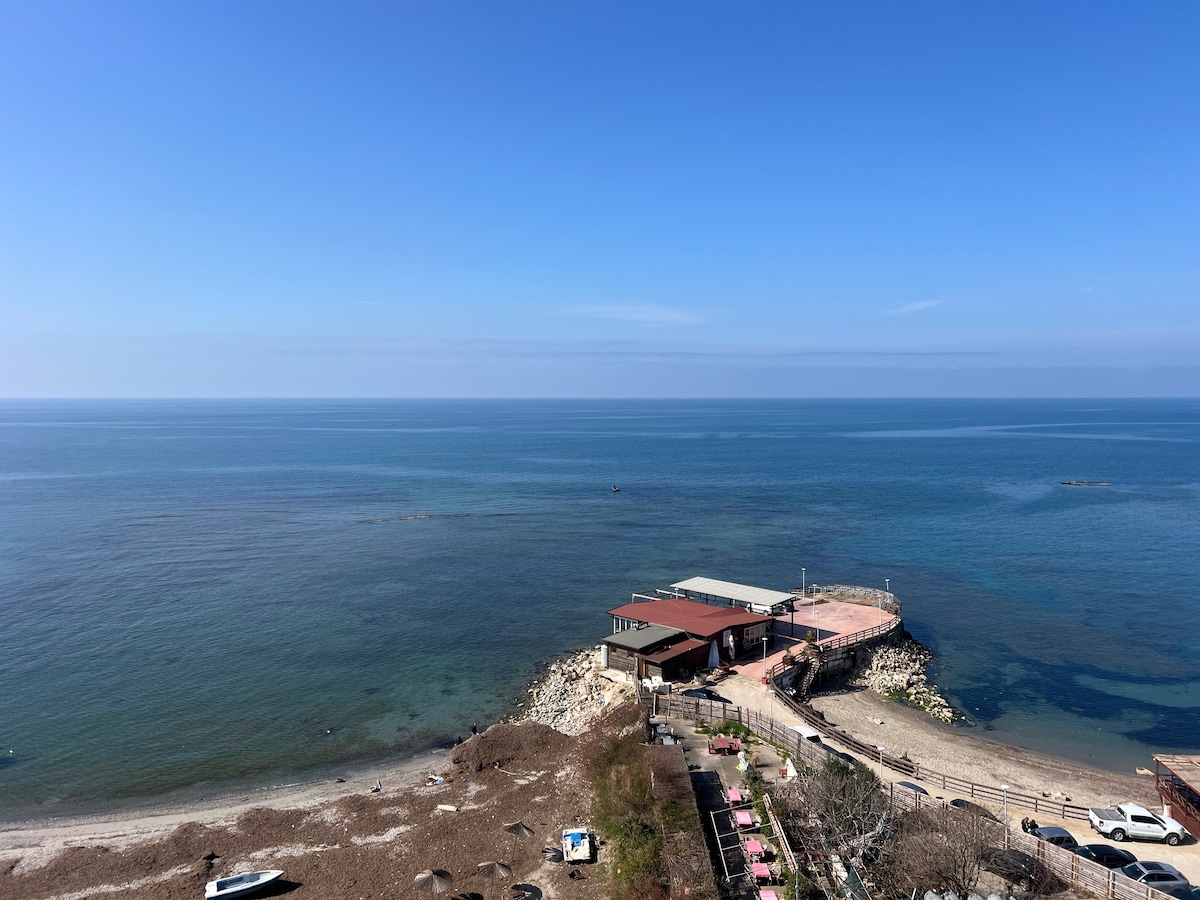 Geräumige Wohnung (140 m2) direkt zum Strand, wo du die Wellen von deiner Wohnung aus spüren und hören kannst. Mit einer spektakulären Aussicht befindet sich diese Wohnung in der beliebtesten Gegend am Strand von Durresi. Die maximale Kapazität beträgt 7 Personen; Wohnzimmer, zwei Schlafzimmer, zwei Badezimmer und zwei Balkone. - Zimmer 1 - Doppelbett und ein Einzelbett. - Zimmer 2 - zwei Einzelbetten. - Wohnzimmer - mit großen Sofas ist gut für 2 Personen. Sehr komfortabel für lange Aufenthalte. Herzlichst, dein Superhost Armando 😇