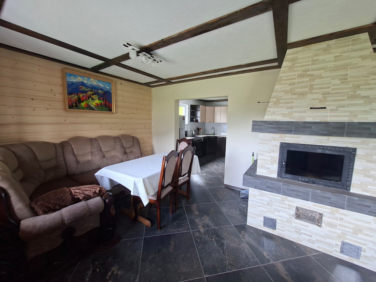 Entspanne dich an einem gemütlichen und stilvollen Ort. Hier kannst du das alltägliche Trubel in Kombination mit der Schönheit der malerischen Berge und der sauberen Luft vergessen. Der Rand der Berge wird dich auf den ersten Blick faszinieren und du wirst immer wieder zu uns zurückkehren wollen) wir haben ein großes Plus, weil es keine Touristen in der Nähe gibt, und du kannst deinen Urlaub genießen, der Kamin wird dich an einem kalten Abend aufwärmen und eine unvergessliche Atmosphäre schaffen) und wir haben auch alle Möbel aus natürlicher Nuss, die eine unglaubliche Atmosphäre bieten,wir warten auf dich!)