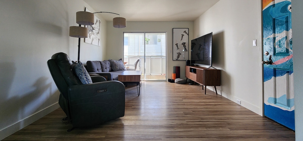 Aloha! Unsere gemütliche Gästesuite ist ein perfekter Zwischenstopp für Reisende, die nur wenige Minuten vom Flughafen und den Stränden entfernt sein möchten. Wir befinden uns in günstiger Lage, etwa 5 Minuten vom Flughafen und 10–15 Minuten von beliebten Stränden und Einkaufsmöglichkeiten in der Innenstadt entfernt. Dies ist eine Wohnung mit einem Schlafzimmer, einem Badezimmer und einer einfachen Küchenzeile (bitte beachte, dass es keinen Ofen oder Herd gibt). Wir sind auf einer belebten Straße, daher möchten leichte Schläfer vielleicht Ohrstöpsel mitbringen.
