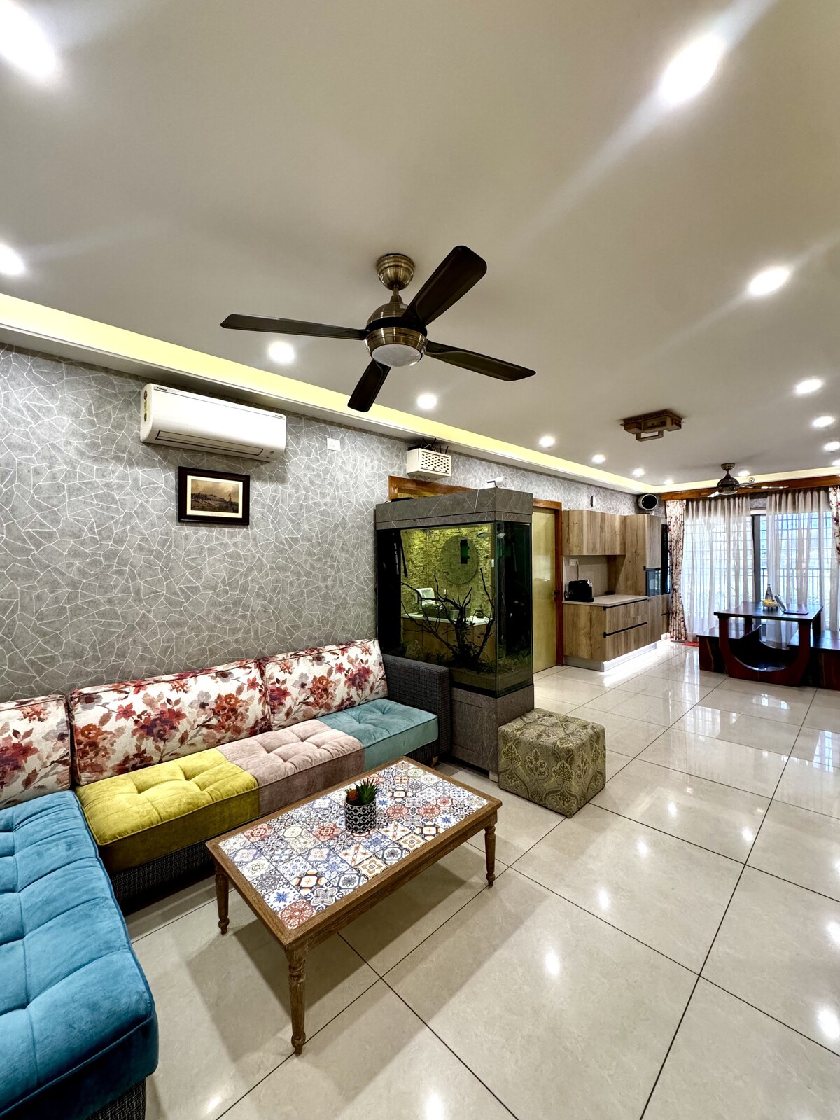Moderne 2-BHK-Wohnung mit Klimaanlage, großes Wohnzimmer/Esszimmer/Küche