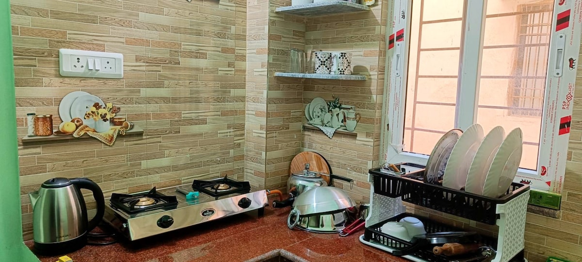 Clean & spacious fully furnished private 2 BHK flat, ideal for families Located in a peaceful area, the apartment offers full privacy and a comfortable home-like stay. The flat is fully furnished with comfortable beds, seating area, wardrobe and a functional kitchen setup. Suitable for both short and long stays, with all basic amenities needed for a relaxed and safe experience.