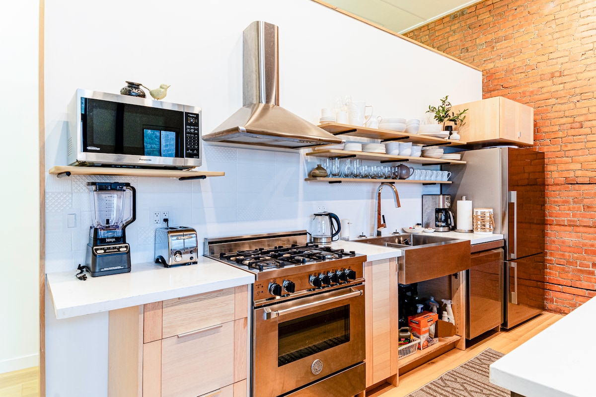 Diese schöne Unterkunft in der Innenstadt wurde komplett renoviert und restauriert und verfügt über Ziegelwände und 12' hohe Decken. Historisch gesehen eine Poolhalle, verwandelt sie sich jetzt in einen stilvollen modernen Wohnraum. Perfekte Unterkunft für deinen Arbeitsauftrag, für den Urlaub oder für den Familienbesuch in der Nähe. Es wurde auf alle Details aus der wunderschön ausgestatteten Full-Service-Küche, Wohn- und Esszimmerbereichen, Vermont Castings Kamin und einem geräumigen Schlafzimmer mit komfortablem Kingsize-Bett geachtet.