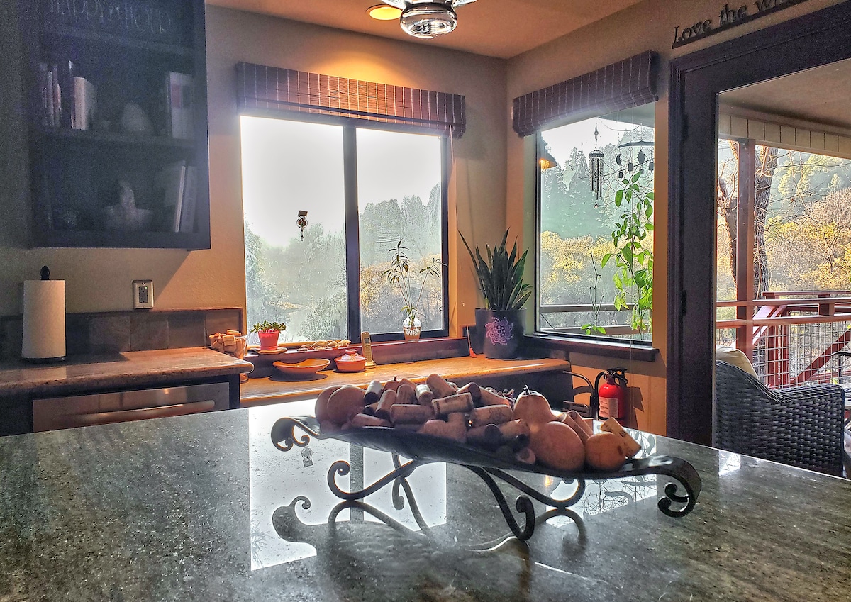 Eingebettet in Redwoods und Efeu auf dem Hügel hat unser Waldurlaub ein magisches Gefühl. Entfliehe dem hektischen Treiben, entspanne dich im Whirlpool und genieße das erweiterte Zuhause. Geh hinunter zum Fluss oder zum Rio Nido Roadhouse. Die Innenstadt von Guerneville und der Armstrong Woods State Park sind 5 Autominuten entfernt. Haven in the Woods liegt nur eine kurze Fahrt von Weinverkostungsräumen und einem MacKenzie Northwood Golf Club entfernt. Hinweis: Muss Treppen zum Haus hinaufsteigen und wir haben keinen Fernseher (haben aber starkes Internet). TOT-ZERTIFIKAT #2903N