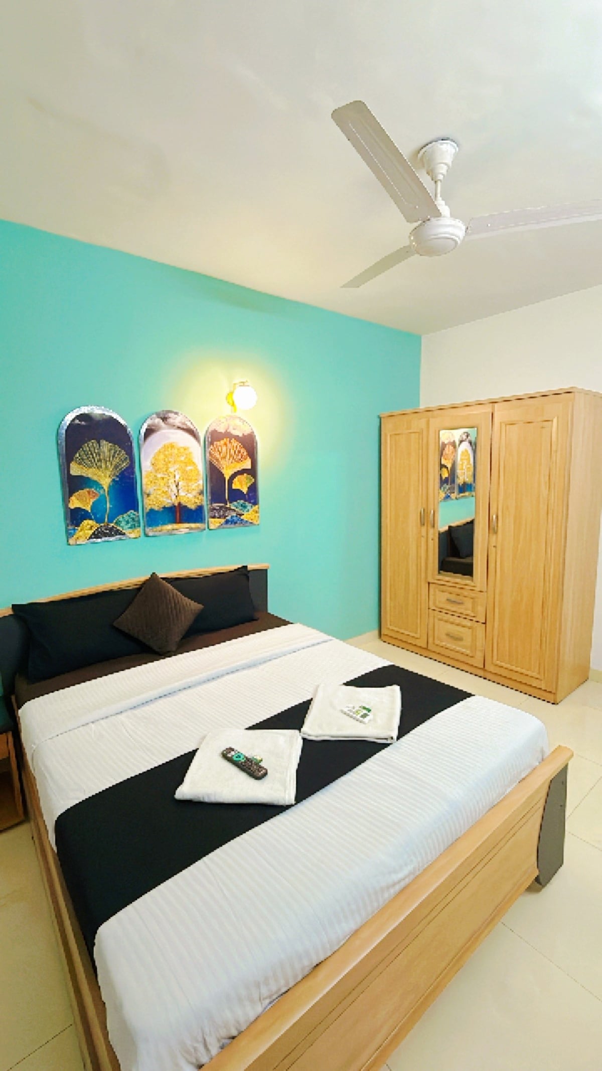 Lehne dich zurück und entspanne dich – in dieser ruhigen, stilvollen Unterkunft. Ganz in der Nähe des Flughafens, ideal für ein Paar oder eine Familie, die für ein paar Tage in einer entspannten Atmosphäre bleiben möchten. 2 Badezimmer, ein klimatisiertes Schlafzimmer mit Kleiderschrank, Kingsize-Bett, ein Tisch zum Arbeiten, ein Wohnzimmer mit einem großen Sofa und Geräte wie Waschmaschine, Gasherd, Mikrowelle, Kühlschrank, Utensilien usw. Es gibt einen 55-Zoll-FHD-Fernseher im Wohnzimmer zusammen mit einem Schlafsofa, um sich zurückzulehnen und deine Lieblingssendungen und -filme zu schauen.