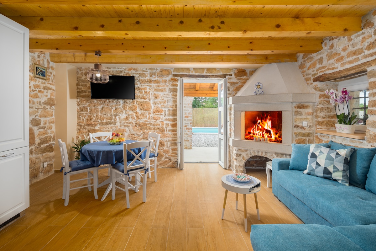 Im malerischen istrischen Dorf Majkusi, nur wenige Autominuten von Poreč entfernt, befindet sich die Villa Valeria, ein charmantes Steinhaus, das traditionelle Architektur mit modernem Komfort vereint. Dieses renovierte istrische Ferienhaus strahlt den authentischen Charakter der Region aus – mit liebevoll erhaltenen Steindetails und warmen Holzelementen, die eine einladende Atmosphäre für einen Familienurlaub oder eine Auszeit mit Freunden schaffen.