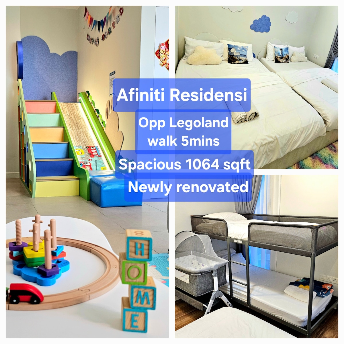 2BR@Afiniti(8PAX) 3mins Walk to Legoland 乐高乐园
