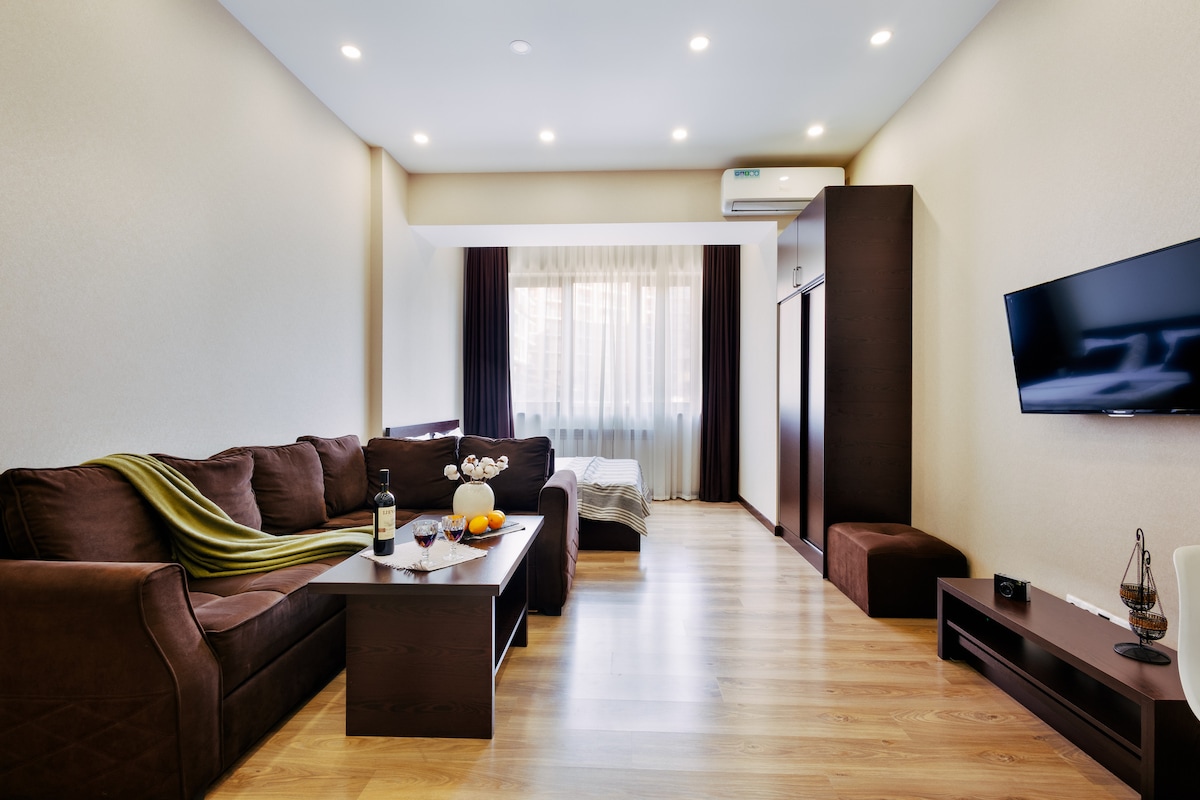В студии есть все необходимое для проживания. квартира. Дом находится прямо в центре города Еревана. Пешком от Площади Республики до студио от 5-7 минут. Метро находитьс на против дома. Около дома много магазинчиков, аптеки, лаборатория, клиника, рынок, парк. 3 супермаркеты которые работают до воздна а одна из них работает 24 часа. парк, скейт площадка, остановка общественного транспорта.