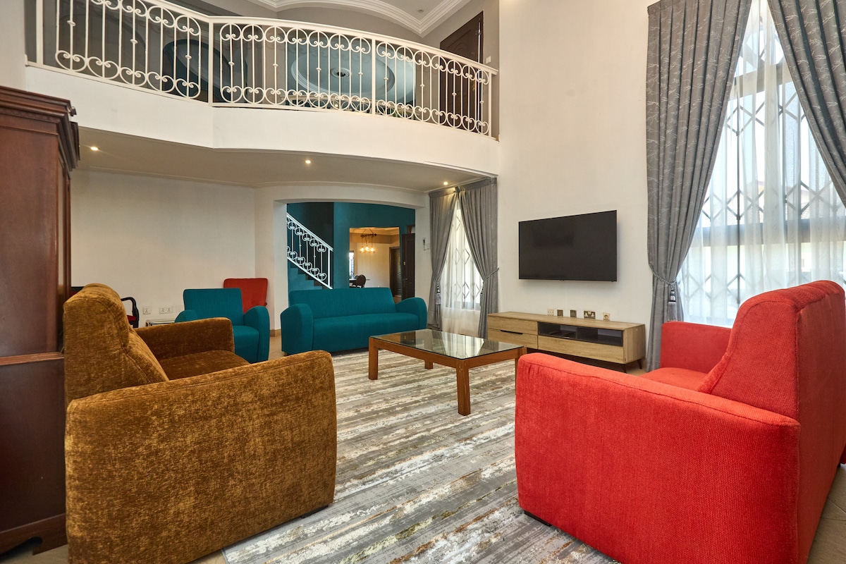 Luxury 6-bedroom all en-suite family-friendly villa in Accra, East Legon—just 18 minutes from the Accra Airport. Set in a quiet, secure neighborhood, and designed for comfort, space, & privacy. This spacious Airbnb home offers king-size beds, A/C, two living rooms, two modern kitchens, workspaces, balconies, a large compound with BBQ area, 24/7 security, and standby power generator. Minutes from A&C Mall and Accra Mall. Ideal for families, groups, event guests, business, and diaspora travellers.