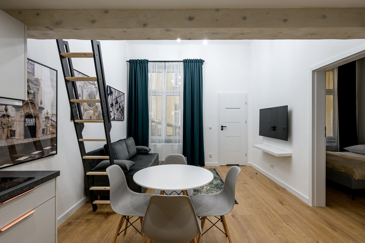 Open the lush floor-to-ceiling drapes to look out onto a cityscape that's barely changed in well over a century. On the left, you'll see the medieval gothic towers of the St. Mary's Basilica from where the famous trumpet call is played. This bright, stately studio features chic furnishings and stylish pieces of modern art. Situated next to the Market Square, it is the best place to explore the city's rich history.