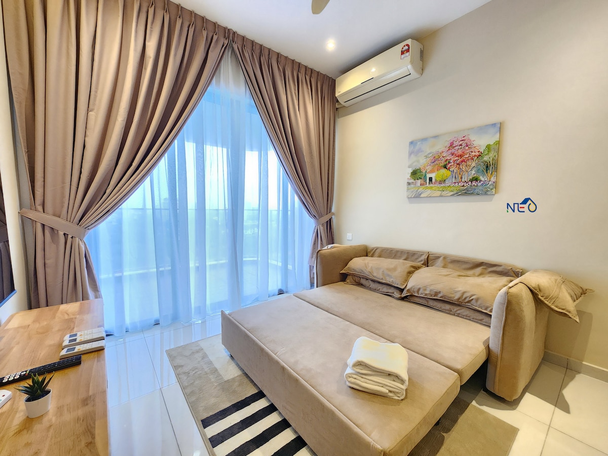Twin Galaxy Residence! Welcome to our spacious/green and cozy studio unit with amazing city view â¤ď¸, perfect for couple, small families, business traveler/tourist for 2/3 pax. Our unit is located in the heart of Johor Bahru town, the place is surrounded by variety of F&B restaurant, family spa/massage center, convenient shop, night life and etc. Come to enjoy ^^ The house are furnished with 1xqueen-size bed, a sofa (also a sofa bed), dedicated workspace and kitchen with daily essentials :)