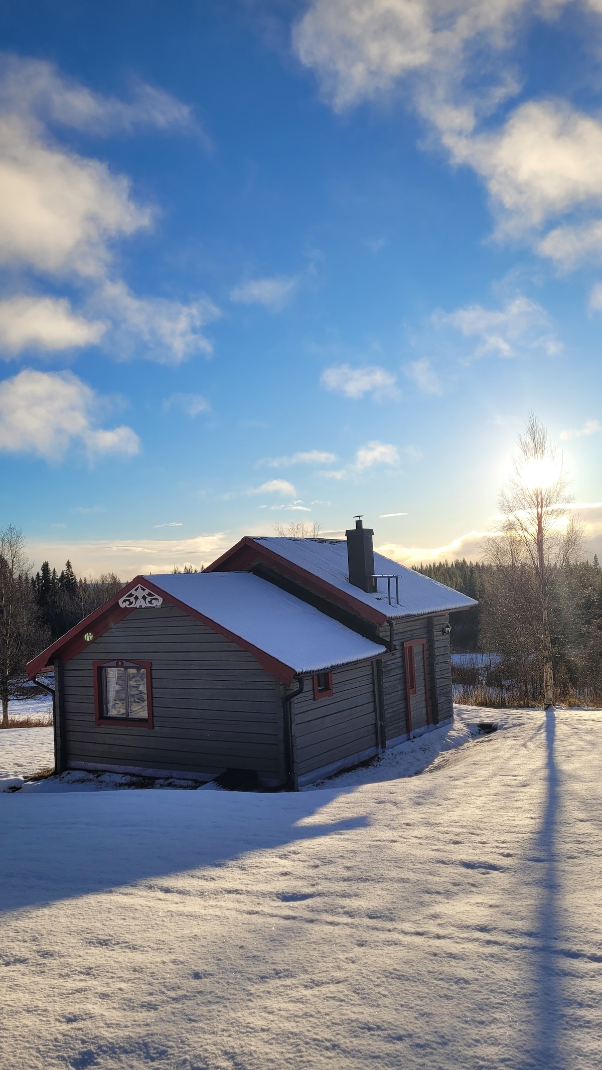 Unser Blockhaus liegt direkt am Ufer des Sees Alsensjön. Das modern ausgestattete Holzhaus strahlt Wärme und Gemütlichkeit aus. Auf 85 m2 erwarten dich große Panoramafenster mit fantastischem Seeblick, ein Speckstein-Kamin, zwei Schlafzimmer und Bad. Direkt vor der Haustür kannst du Angeln, Paddeln, Baden, Wandern und die Langlauf Ski anschnallen. Unser benachbarter kleiner Hof mit Kindern, drei Schlittenhunden, Katzen, Hühnern und Garten kann auch ein bisschen Bauerhnof-Gefühl aufkommen lassen.