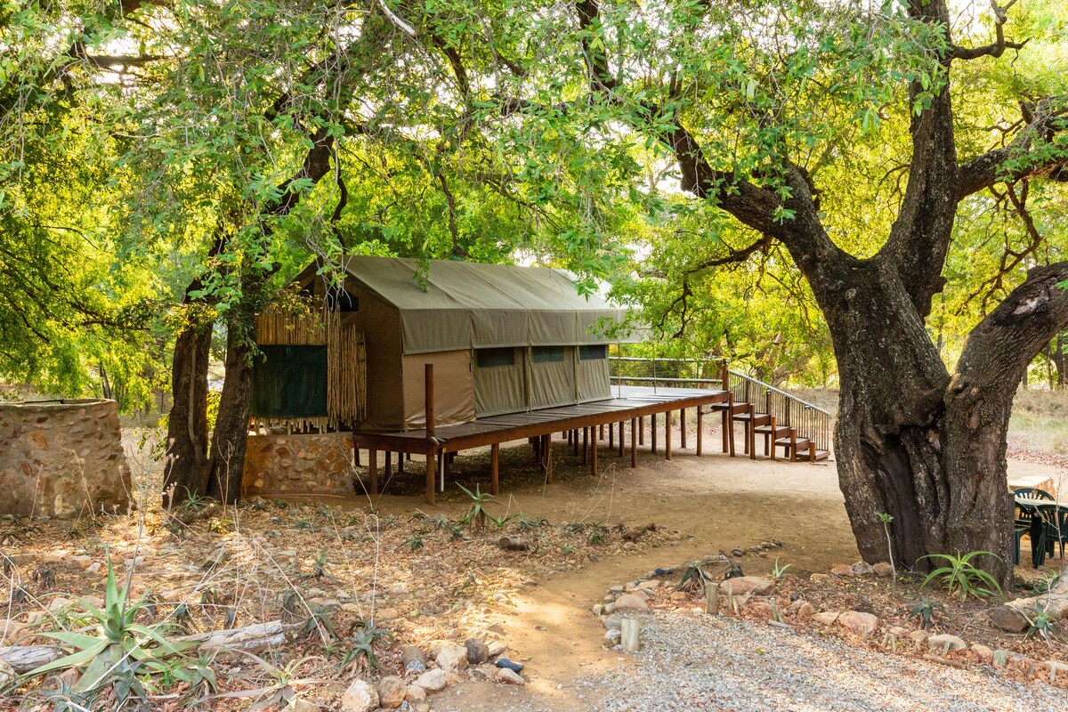 Luxuriöses Zeltcamp zur Selbstverpflegung im Lowveld-Busch mit atemberaubendem Bergblick und frei wandernder Tierwelt. Ein wirklich einzigartiges Erlebnis, bei dem unsere Gäste ein authentisches Busch-Erlebnis erhalten, ohne Grenzen zwischen sich und den natürlich vorkommenden Tieren und der Vogelwelt. Setz dich mit einer Tasse Kaffee auf deine Terrasse, während eine Giraffe friedlich an dir vorbeizieht. Eine Gelegenheit, dich zu entspannen, neue Energie zu tanken und dich wieder mit der Natur und dir selbst zu verbinden.