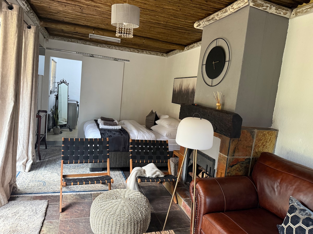 Geräumige Unterkunft zur Selbstverpflegung mit einem Schlafzimmer und integriertem Braai auf der Veranda. Separater Eingang und überdachter Parkplatz. Kleiner Garten. Auf dem gleichen Gelände wie köstliches Monster. Kleiner eingebauter Safe für den persönlichen Gebrauch.