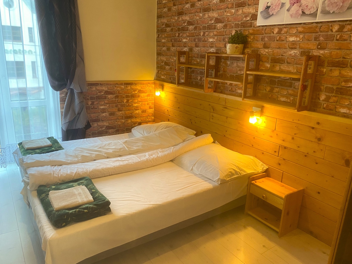 Komfortable, geräumige (80 m2), moderne und stilvolle Wohnung im Zentrum von Stary Sącz. 2 unabhängige Schlafzimmer, eines mit einem großen Doppelbett, das andere mit zwei Einzelbetten. Geräumige Küchenzeile verbunden mit Wohnzimmer, TV und Esszimmer. Im Dachgeschoss im Bergmannsstil eingerichtet. Zur Verfügung steht ein ruhiger Garten mit Parkplatz. Gute Anbindung an lokale Sehenswürdigkeiten in Piwniczna, Krynica oder Szczawnica und Krościenko. Jedes der Zimmer ist mit einer Klimaanlage ausgestattet. Ich empfehle es sehr