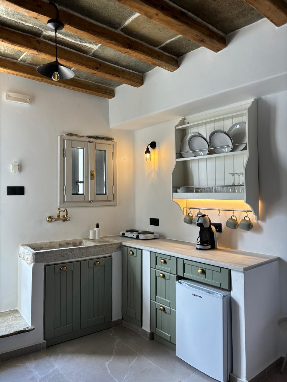 Dieses 55 m² große umweltfreundliche Haus befindet sich 18 Autominuten vom Hafen von Tinos entfernt auf der Westseite der Insel, eingebettet in einen Olivenhain und flankiert von felsiger Landschaft und einem Blick auf die Ägäis. Dieses traditionelle Bauernhaus wurde in einem minimalistischen Stil neu gestaltet. Der Raum ist ideal für ein Paar, das Landleben und Privatsphäre liebt. Es bietet die Möglichkeit, sich vom Stadtleben zu erholen und sich wieder mit der Einfachheit und Ruhe der Natur und der Achtsamkeit zu verbinden.