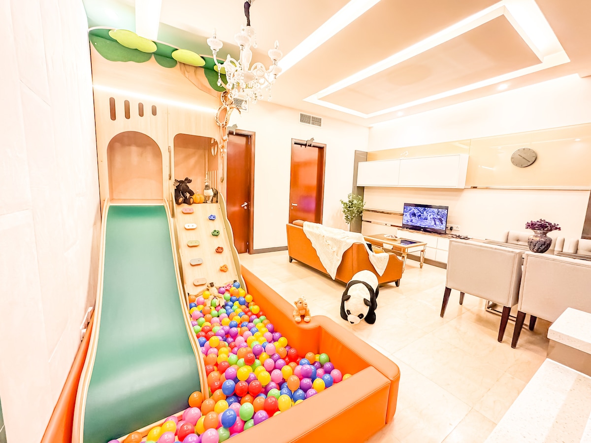 Wild Wild Wonderland, eine kinderfreundliche Unterkunft im Apartmentstil mit Tiermotiven, in der Kinder etwas über die Tiere lernen, an der Rutsche vorbei in einen Bällebad sausen und unabhängig spielen, während die Eltern sich zurücklehnen, entspannen und den Urlaub genießen. Wir befinden uns in Bukit Bintang, Kuala Lumpur und in der Nähe von mehr als 40 Sehenswürdigkeiten, mit einem 5- bis 10-minütigen Spaziergang zu: Pavilion KL TRX The Exchange Times Square Bintang Walk Hop-on-Hop-off-Bushaltestelle Unsere Unterkunft wird nach jedem Aufenthalt für den Komfort deiner Familie desinfiziert.