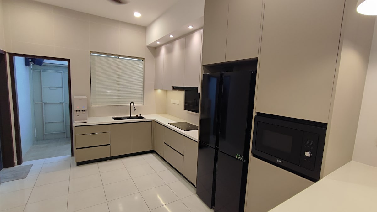 3 Bedrooms Semi D Single Storey House 🛏 Master room: Queen bed attached bathroom + 2 Sejadah ( praying matt ) 🛏 Room 2: Queen bed 🛏Room 3: Super Single bed (Room 2 & 3 share bathroom) 👨👩👧 Comfort for 5, max 8 person 🛋️ Extra floor mattress available upon request (additional charge applies) ❄️ Air-Con in all bedroom + living and dining area 📶 Free Wi-Fi 🍳 Kitchen: fridge, induction cooker, bread toaster, water filter (hot/cold), rice cooker, hair dryer, iron and board