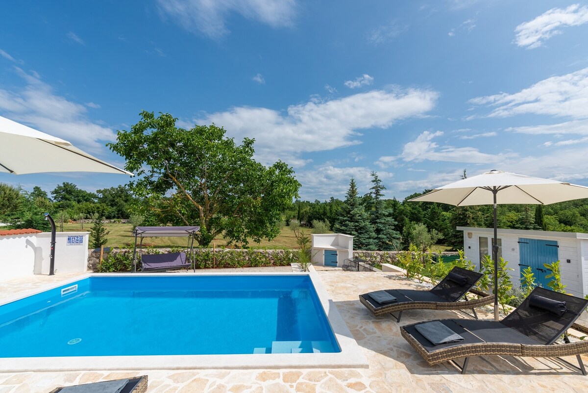 Villa GreenBlue ist ein modernes und luxuriös eingerichtetes Ferienhaus mit Pool in ruhiger Lage, nur 2 km vom Zentrum von Porec und genauso weit vom Meer entfernt. Das Haus ist abgelegen, umgeben von einer Wiese und einem Wald, von dem seine neugierigen Bewohner, Rehe und wilde Kaninchen oft auf der Wiese „vorbeischauen“ werden. Das Haus befindet sich in einem eingezäunten Garten, der nur Gästen des Hauses mit einem großen 50 m ² großen Pool, einem Außen-Whirlpool, einer finnischen Sauna und einem Grill zur Verfügung steht.
